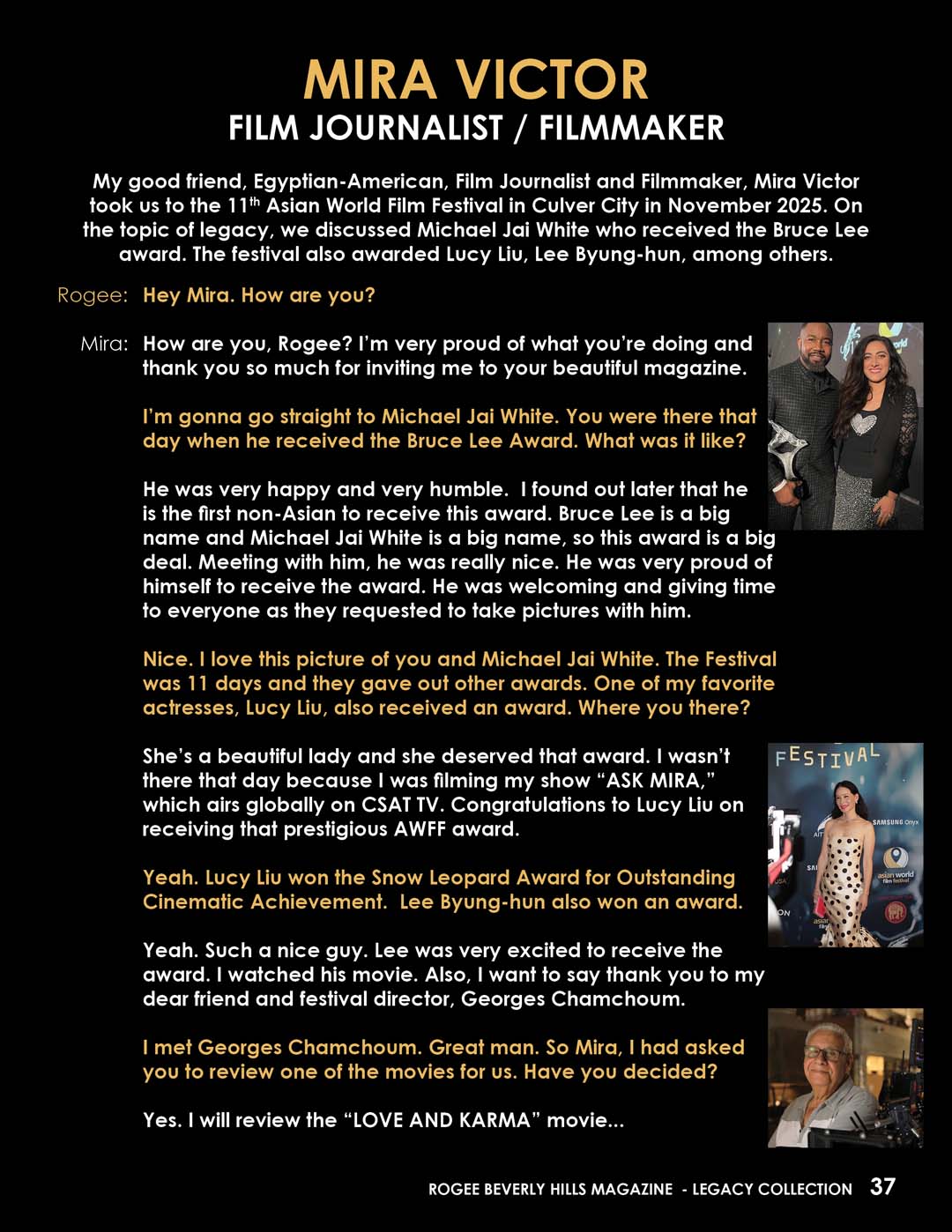 My good friend, Egyptian-American, Film Journalist and Filmmaker, Mira Victor took us to the 11th Asian World Film Festival in Culver City in November 2025. On the topic of legacy, we discussed Michael Jai White who received the Bruce Lee award. The festival also awarded Lucy Liu, Lee Byung-hun, among others.